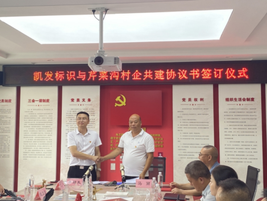 接下来我公司与芹菜沟村签订了村企共建协议书,此次村企联建意在建立村企党组织互帮互助机制。一方面芹菜沟村可为我公司解决企业劳动力不足现象等,另一方面凯发标识能够帮助村民解决就业难题,无偿为村民提供实操技能培训和优质的广告服务,力所能及为贫困、就业难的人员提供就业岗位,支持村民返乡工作,增加乡村活力;从而进一步加深了多年来的合作愿景,共谋发展!